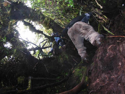 Chris and Lemuel, the author’s climbing buddies while maneuvering a 20 meters slippery 90 degrees steep descent, holding only to jutting root parts and mostly dangling helplessly with no footholds. This is an extreme, “hard core” trail we manage to pass during our late traverse climb in Bukidnon.A good fitness program for mountaineers consist of two major groups of exercises, the cardiovascular (aerobic) and motor (anaerobic) fitness exercises. Cardiovascular fitness is measured by your aerobic capacity to take in and use oxygen. In most instances, this is a function of pumping blood (and oxygen) into the muscle system with the help of lungs. A motor fitness program consists of exercises to enhance strength, endurance, power, balance, agility and flexibility. With better cardiovascular capacity and good motor fitness, the third component of fitness training for climbing, which is acclimatization, will be a little less painstaking.